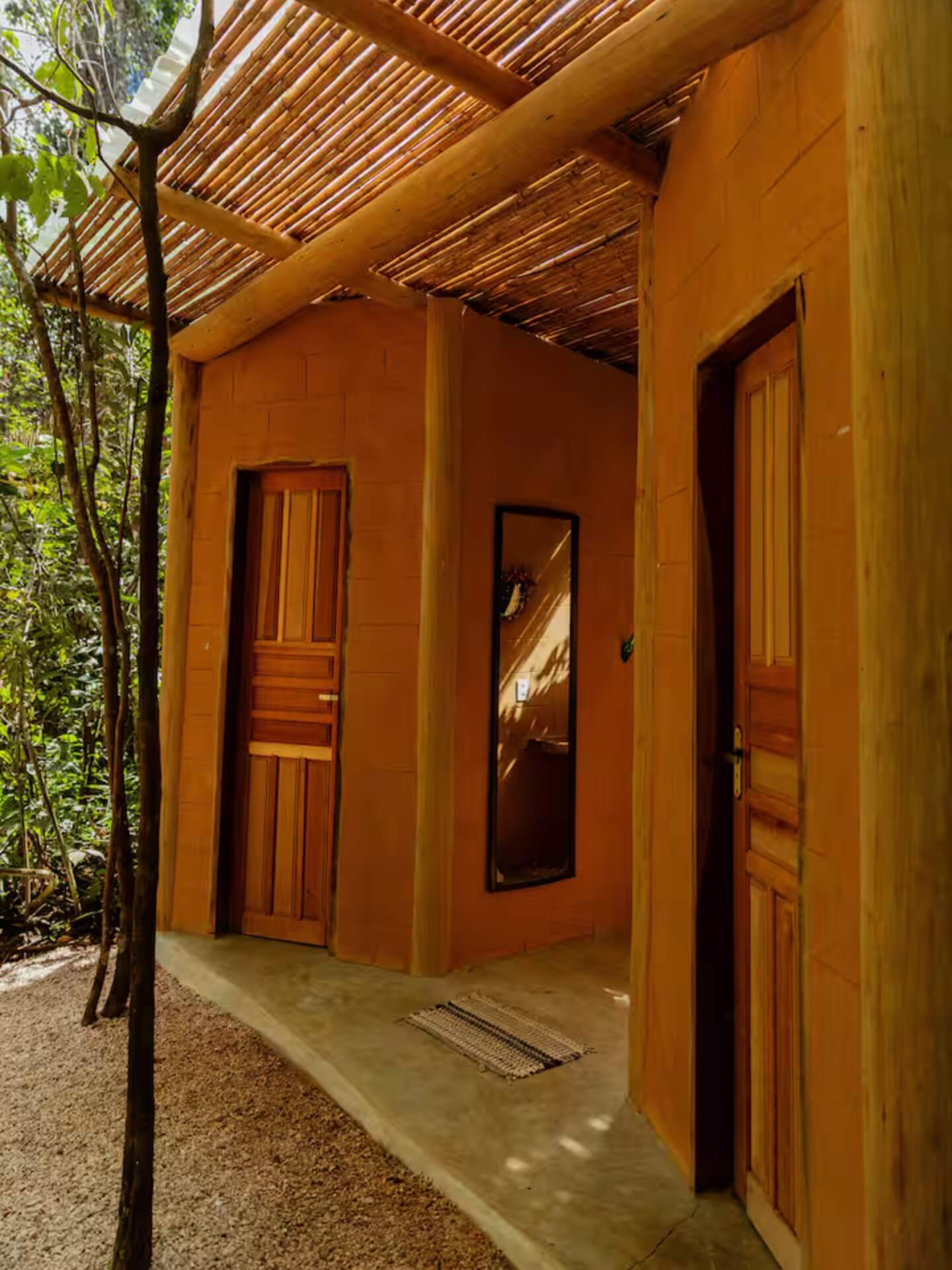 Segurança e Bioconstrução: Arquitetura que integra natureza e modernidade, com portão eletrônico de senha e segurança 24h.