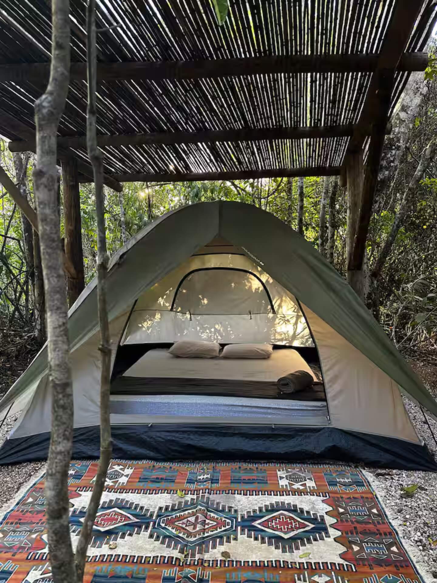 Barracas Prontas e Privativas: Áreas delimitadas com barracas já montadas, novas e equipadas com colchão D33, travesseiros e roupas de cama de primeira linha.